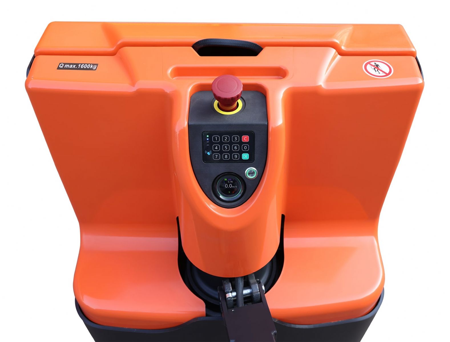 Unser PT 16L Li ist ein innovativer und leistungsstarker Elektrohubwagen, der speziell für den effizienten Materialtransport in Lagerhallen, Produktionsstätten und Logistikzentren entwickelt wurde. Dank seiner modernen Lithium-Ionen-Technologie, seiner kompakten Bauweise und seiner hohen Tragfähigkeit von bis zu 1.600 kg bietet er maximale Flexibilität und Produktivität im innerbetrieblichen Transport. Ein verstärktes Chassis mit 8 mm starker Schürze und einer Metall-Batteriehaube sorgt für Langlebigkeit und reduziert Servicekosten, selbst unter anspruchsvollen Bedingungen. Durch den zentral gelegenen Not-Aus-Schalter kann der Nutzer jederzeit schnell reagieren und im Notfall das Gerät mit einem Handgriff ausschalten, was die Arbeitssicherheit steigert. Die integrierte Hupe ermöglicht es, auch in lauten Umgebungen auf sich aufmerksam zu machen, was die Personen um sich herum effizient warnt.