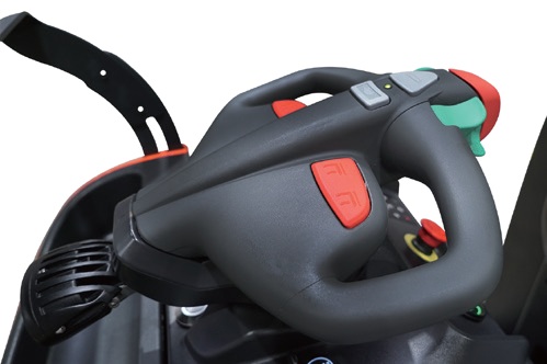 Andererseits zeigt der LCD-Bildschirm den Status des Fahrzeugs einschließlich der Anzahl der Arbeitsstunden, das Ladelevel der Batterie und mögliche Fehlercodes zu Diagnosezwecken an, wodurch ein plötzlicher Ausfall vermieden und eine schnelle Fehlerbehebung ermöglicht wird. Die ergonomisch gestalteten Tasten sind komfortabel in der Bedienung und stets leicht erreichbar. Außerdem ist das Fahrzeug mit einem Notfall-Rückwärtsknopf ausgestattet, der das Fahrzeug zwingt, rückwärtszufahren, falls der Bediener in einen zu engen Bereich Reinfährt. Dadurch kann der Bediener sich einfach aus der Situation befreien und das Unfallrisiko vermindern.