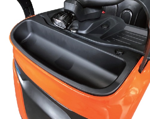 - Große Ablage: Die große Ablagefläche vorne bei dem Deichselkopf ermöglicht dem Bediener, zusätzliches Material wie zum Beispiel Stretchfolie, Werkzeuge oder andere Kleinigkeiten zu transportieren, wodurch die Effizienz gesteigert wird.