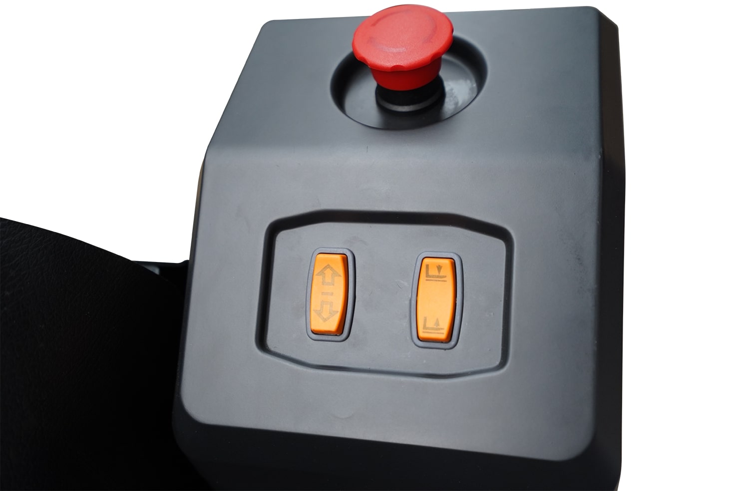 - Fußschalter für das Absenken der Plattform: Sorgt dafür, dass beim Bedienen des Fahrzeugs beide Hände frei sind und somit die Arbeitseffizienz nochmals gesteigert werden kann.