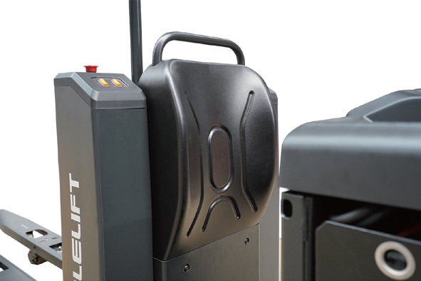 Die 4-Punkt-Struktur mit schwimmender Stoßdämpfungsplattform und Gummipolstern reduziert Vibrationen auf ein Minimum. Zusammen mit der ergonomisch geformten Rückenlehne trägt dies zur Vermeidung von Ermüdungserscheinungen des Fahrers bei. Mit den Jog-Tasten auf beiden Seiten des Staplers kann der Bediener den Stapler vorwärts/rückwärts fahren oder die Gabel anheben, während er nebenherläuft. Der Bediener muss nicht ständig auf den Stapler auf- und absteigen, um ihn zu bedienen. Dies hat die Kommissioniereffizienz und die Betriebssicherheit erheblich verbessert, da die Geschwindigkeit durch die Jog-Taste reduziert wird..jpg)